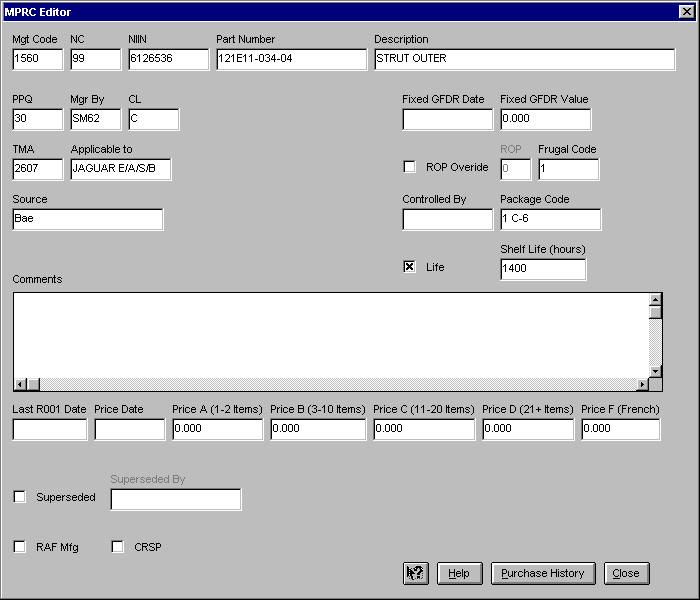 The prototype system interfaced to two forms of electronic purchase information. The R001 form represents the purchase requisition information.